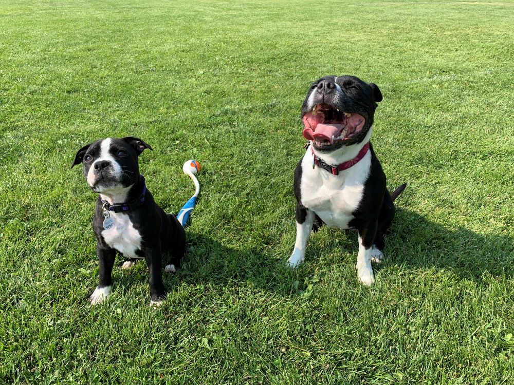 “We’re here to meet one of Alicia’s Staffies that needs a home,” I announced. M